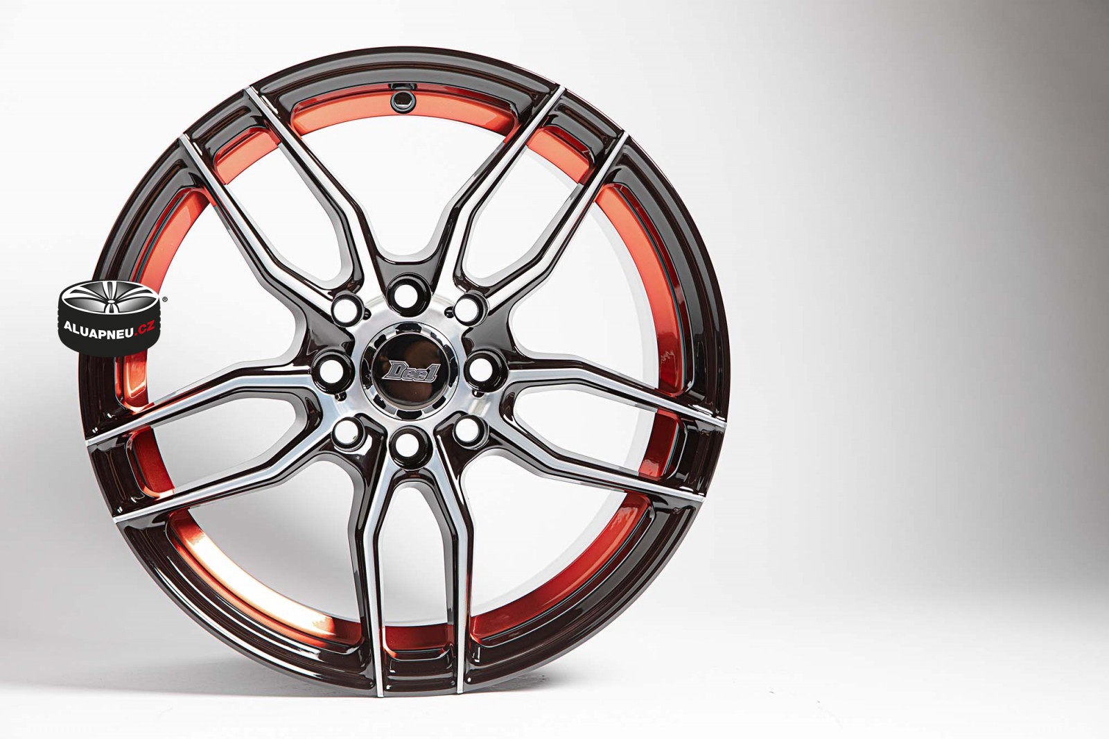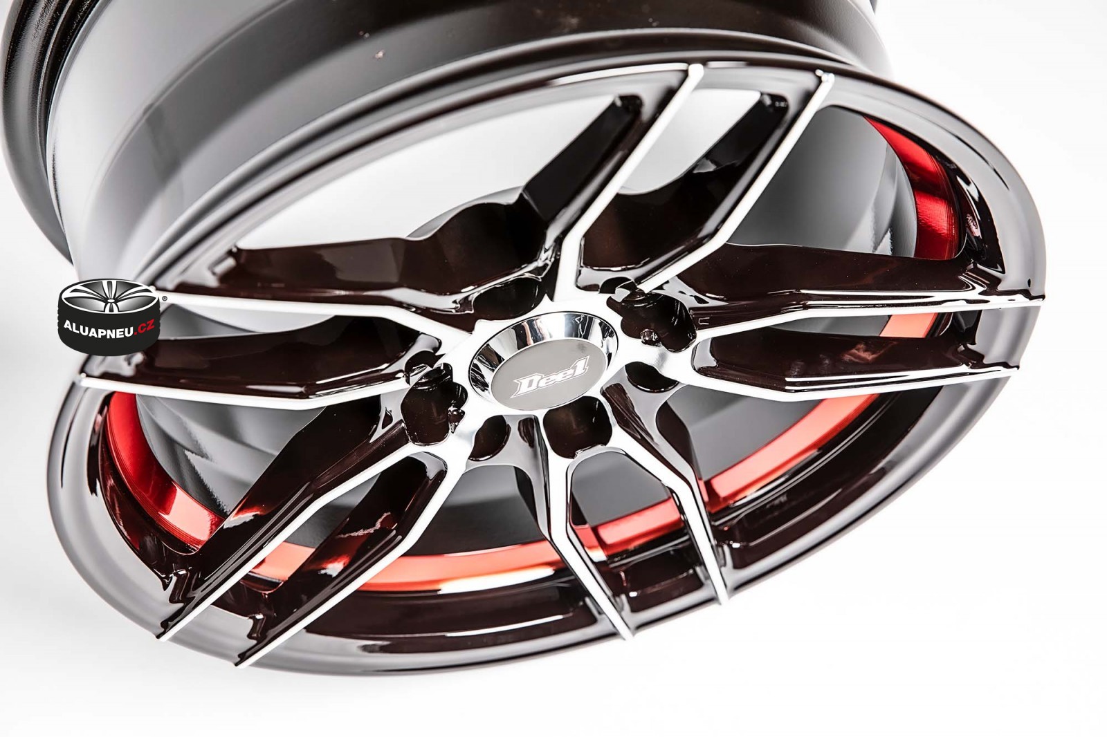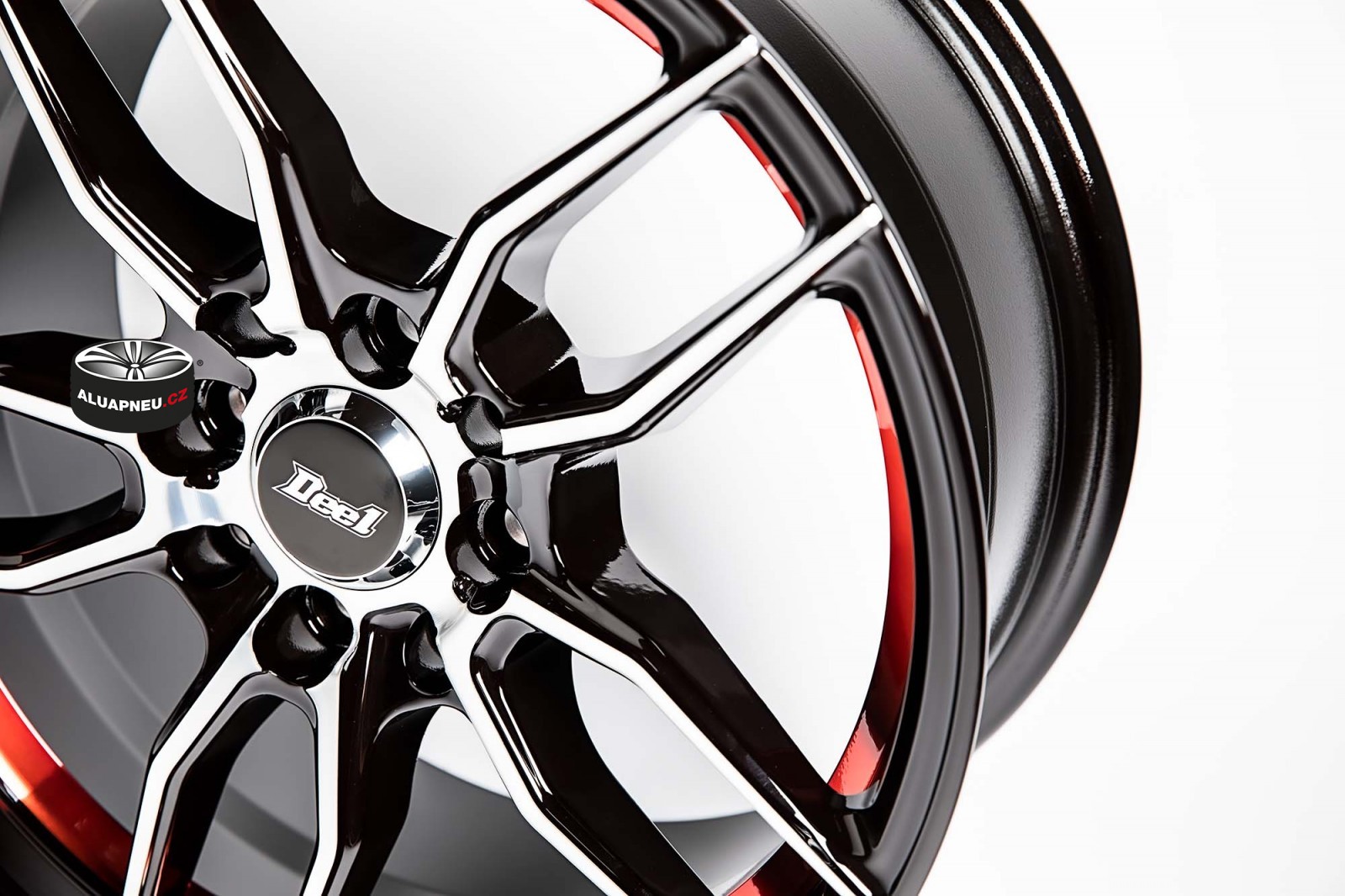 ČERNÁ ALU KOLA S LEŠTĚNÝM ČELEM A RUDOU LINKOU