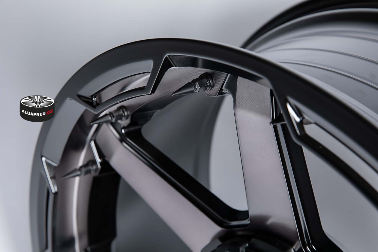 ČERNÁ ALU KOLA S ŠEDOU LEŠTĚNOU ČELNÍ STRANOUZÁTĚŽOVÁ ALU KOLA VHODNÁ PRO OFF ROAD VOZY